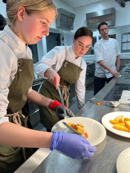 De voorbereidingen voor het diner door de enthousiaste groep studenten zijn enkele weken geleden al begonnen. Zij bereidden de maaltijden voor verzorgden de organisatie en inventarisatie; zo ontdekken zij hoe de workflow werkt in het ziekenhuis en brengen goede ideeën in. Tijdens het diner woensdagavond zagen we een deel van de studenten ondersteunen in de keuken, een ander deel hielp bij het serveren aan patiënten en partners.