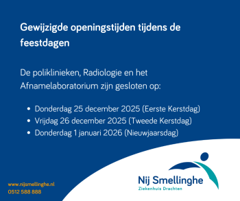 De poliklinieken, Radiologie en het Afnamelaboratorium zijn gesloten tijdens de feestdagen.