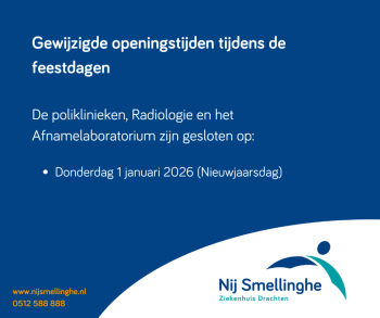 Voor onze actuele openingstijden op de verpleegafdelingen kun je vinden op onze website: https://www.nijsmellinghe.nl/uw-bezoek/bezoektijden