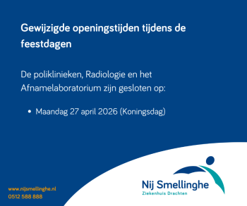 Voor onze actuele openingstijden op de verpleegafdelingen kun je vinden op onze website: https://www.nijsmellinghe.nl/uw-bezoek/bezoektijden