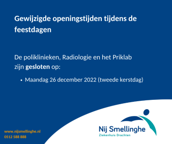 De poliklinieken, Radiologie, Priklab en de Huid- en laserkliniek zijn gesloten tijdens de feestdagen.