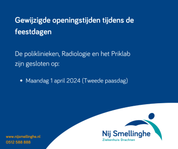 De poliklinieken, afdeling Radiologie en het Priklab (Afnamelaboratorium) zijn gesloten tijdens de feestdagen.