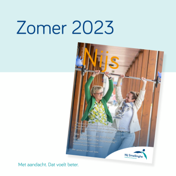 Benieuwd hoe medewerkers in Nij Smellinghe twee passies kunnen volgen? Op pagina’s 22 en 23 lees je dat Rachel de Vries haar functie als kinderverpleegkundige afwisselt met haar passie voor digitale ontwikkelingen. Dit blijkt een gouden combinatie!