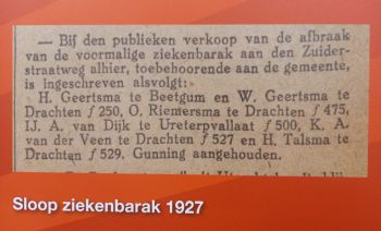 Bouwbedrijf Talsma bestaat deze week 100 jaar en is sinds de start betrokken bij bouw, verbouw en sloopwerkzaamheden van ons ziekenhuis. Zo hangt er een klein krantenknipsel uit 1927 op kantoor waarin de biedingen staan vermeld die door ‘oerpake’ Talsma zijn gedaan voor het sloopwerk van de ziekenbarak. Het slopen is naast het bouwen ook nu actueel, ondanks de andere tijden en nieuwe manier van werken.