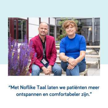 “Het is heel normaal om zenuwachtig te zijn voor een ziekenhuisbezoek. Hierdoor is een patiënt ook gevoeliger voor wat er wordt gezegd en hoe het wordt gezegd. Met Noflike taal laten we patiënten met positief taalgebruik en afleidings-en ontspanningstechnieken meer ontspannen en comfortabeler zijn.”