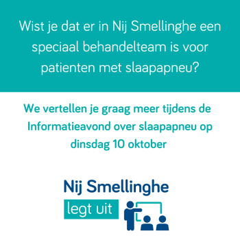 Op dinsdag 10 oktober organiseert Nij Smellinghe een informatieavond over slaapapneu.
