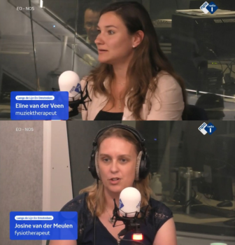 Vol passie vertelden Eline en Josine in het NPO radio 1 programma ‘Langs de lijn En omstreken’ over muziektherapie in het ziekenhuis Nij Smellinghe op de afdelingen Neurologie en Intensive Care. Eline van der Veen, muziektherapeut bij ZuidOostZorg, liet horen, legde uit hoe muziektherapie werkt en hoe het wordt toegepast in het ziekenhuis. Muziektherapie kan helpen met activering/motivering, cognitie of het verbeteren van spraak. Bijvoorbeeld door het zingen van een herkenbaar nummer en zo de woorden uit te lokken: In Holland staat een ….