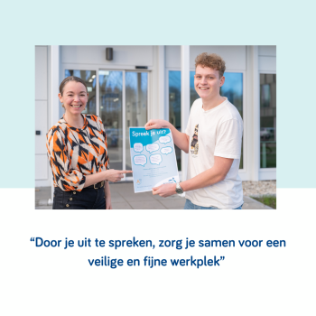 "Het is best spannend om het hier met elkaar over te hebben. Tegelijkertijd is het essentieel om elkaar scherp te houden door elkaar aan te spreken op gedrag of afspraken. En let wel: het hoeft echt niet altijd negatief te zijn. Ook het geven van een compliment is een mooi voorbeeld van ‘Spreek je uit’."
