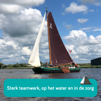 De bemanning, onder leiding van schippers Riemer en Siard, trotseert samen weer en wind. Er zijn duidelijke rollen, ze vertrouwen op elkaar, schakelen snel en werken als een team, net zoals in ons ziekenhuis. Je moet kunnen samenwerking onder druk, omgaan met de veranderingen en toekomstbehendig* zijn. Met deze samenwerking stimuleren en inspireren we medewerkers. Nij Smellinghe gebruikt het skûtsje voor teambuilding en groepsuitjes. Dit biedt collega’s de kans om buiten de muren van het ziekenhuis samen te werken, elkaar op een andere manier te leren kennen en de teamgeest te versterken. Net zoals op het water, geldt ook in de zorg: samen staan we sterker.