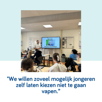 Volgens kinderarts Alwin Brouwer en longarts Romkje Hospes is het vapen een groeiend probleem. “De nicotine die in een vape zit, is enorm verslavend. Wat we zien, is dat de tabaksindustrie bewust inspeelt op jongeren.” Vanuit het educatieve programma ‘Vapen #jouwkeuze’ geven ze gastlessen op scholen.